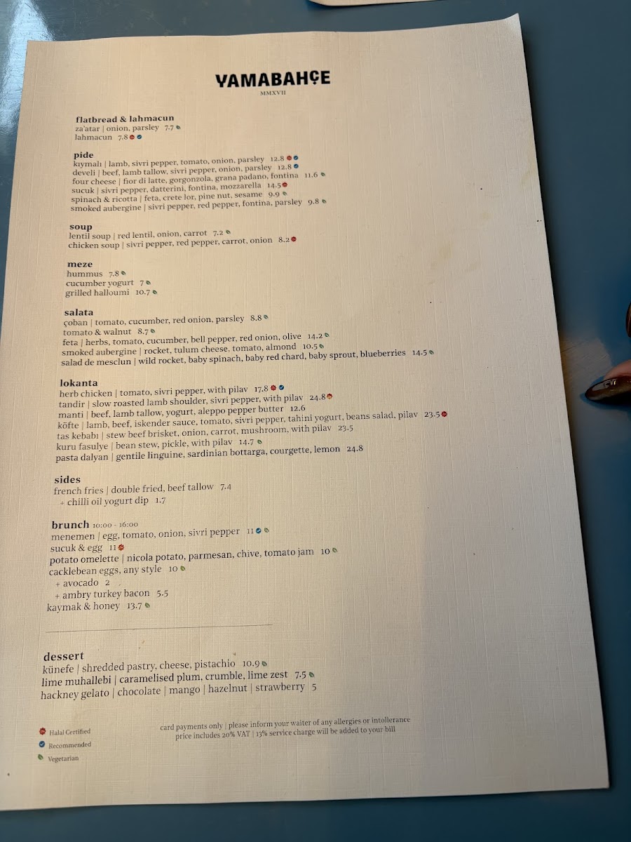 diners can expect hearty options like tandır and lamb köfte, alongside lighter bites such as pan-fried halloumi and fresh spinach leaves. The menu also features classic staples like manti (Turkish dumplings) and kuru fasulye (white bean stew), which pair nicely with a cup of strong Turkish coffee or a glass of rakı for those looking to linger and enjoy a relaxed occasion.